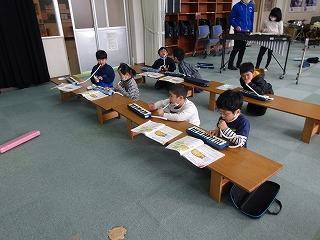今回は合奏をします。楽器ごとにパート分けをしました。