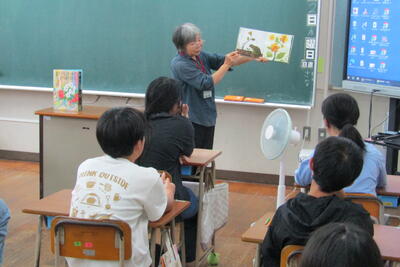 9月4日(水)、夏休み明け最初の朝の読み聞かせでした。今日は、沖さん、打越さん、永松さん、本多さん、前田さん、伊藤さんでした。楽しい話あり、真剣な話あり、先週の平和集会を受けた戦争のお話もありました。