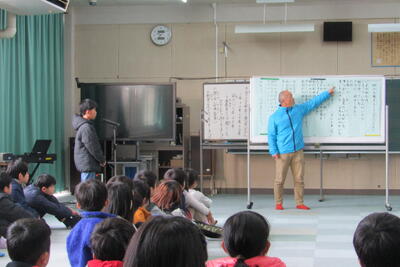 子どもたちは、感想の発言と「青い空は」の歌でお返しとお礼を伝えました。