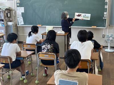 6月5日(水)、読み聞かせの会クローバーによる朝の読み聞かせがありました。今日は、德満さん、打越さん、村山さん、伊藤さん、松永さん、前田さんでした。