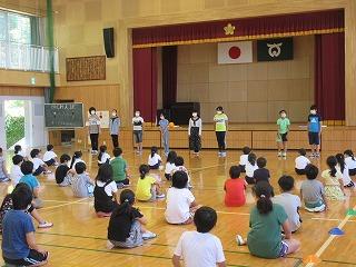 四小集会(6年生発表) 投稿日時 : 2020/06/10 学校サイト管理者 6月9日(火)の四小集会は、6年生の学年発表でした。 6年生は、三密を避ける遊び方の提案をしました。 フラフープを使ったり、タッチしないおにごっこだったりと、様々なアイデアを凝らしてこの時期を乗り切る楽しい遊び方を発表してくれました。 次は、6年生の学級目標の発表でした。 「何事にも挑戦し お手本になる六年生」 ・周りをよく見て助け合う ・明るく元気にあいさつをする ・すすんではたらく 南関四小のリーダーとして、とても頼もしい姿を見せてくれました。