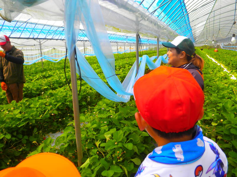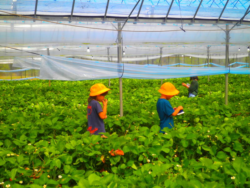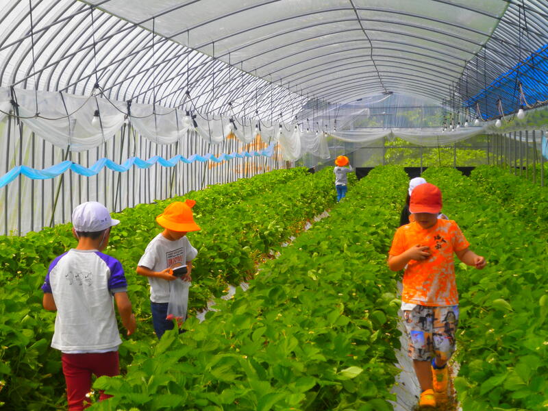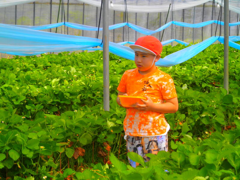 本日、1・2年生でいちごがりに行きました。德満一華さん、月人さんのいちご畑に行きました。德満さんのご厚意で、いちごをたくさんいただきました。まず、お父さんから、いちごを育てる仕事についてお話を聞きました。子どもたちは興味深くお話を聞いていました。次に、収穫の仕方を教えていただきました。それから、収穫しました。とりたてのいちごは甘くてとてもおいしかったそうです。子どもたちはもっていったタッパにいちごを持って帰り、家族へのお土産もいただきました。学校にもたくさんのいちごをいただきました。甘くておいしいプレゼント!本当にありがとうございました。