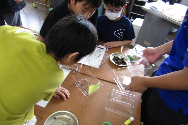 生活科の学習で、夏にかけての生き物探しをしました。今日は、学校の土の中にいる生き物について調べました。子どもたちは、腐葉土の中のみみずや小さな虫、ダンゴムシを虫眼鏡で探し、ケースに移して観察しました。腐葉土の中に、たくさんの生き物がおり、子どもたちは夢中で生き物探しをしていました。2年生の子どもたちは、全員生き物が好きなようで、手で触ったり、虫眼鏡で観察したりしていました。普段見えないようなところにも生き物たちは暮らしていることを発見する時間になりました。
