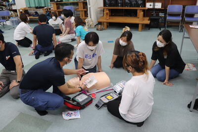 体験用の人形も複数準備していただき、みんなで体験できました。ない方がいいのですが、いざというときにこの体験を生かせるようにできたらと思います。講習を受けられた保護者から、夏休み中のプール開放時の監視もしていただきます。事故のないことを祈っています。