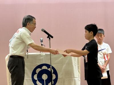 作文と標語で優秀賞、特別賞に選ばれた児童生徒の作品披露と表彰がありました。
