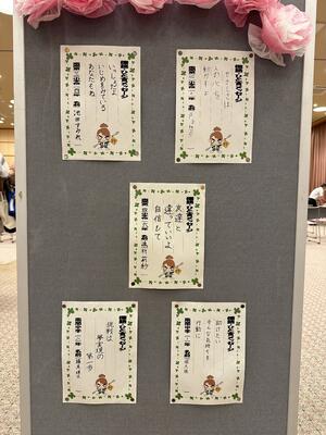 会場の後方壁面には、応募された標語が展示されていました。多くの方に見ていただきたかったです。