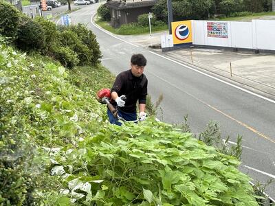 斜面を含めた草刈り、草集め、グラウンド等の草取り、軽トラックでの草等の運搬、樹木の剪定等、たくさんの方々のご協力で、広い校地が一気に美しくなりました。けがや熱中症等もなく、無事に終えたこともありがたかったです。