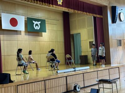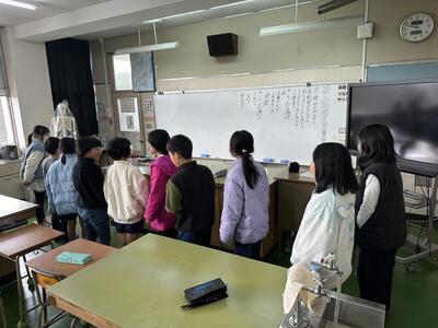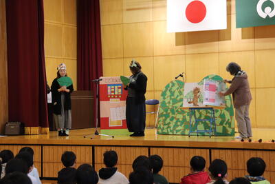 5年生は、総合の時間に勉強した環境問題やSDGsについてプレゼンテーションしました。内容の説明と、三択のクイズでみんなに考えてもらう努力をしていました。みんなの考えや行動が少しでも変わるといいですね。
