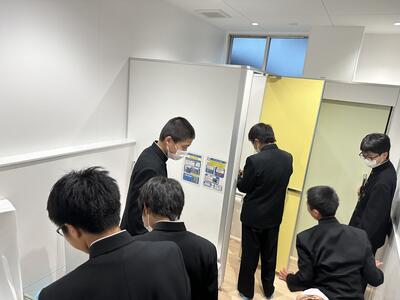 11月27日(月)、学校が終わった午後5時頃、中学2年生にあたる卒業生13人と卒業当時の担任だった永杉先生が、先日改修が済んだ校舎のトイレを見学に来てくれました。