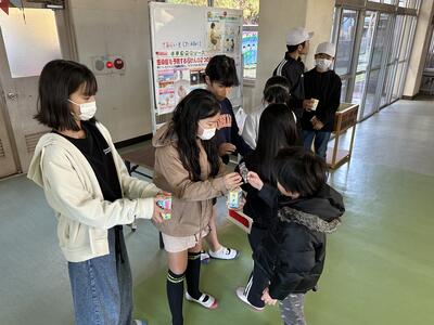 12月12日(火)と13日(水)、企画委員会の児童が朝から1階ホールに集まっていました。赤い羽根共同募金の募金活動です。