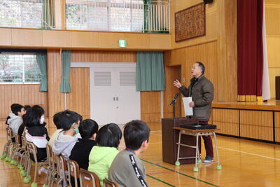 田中さんは93歳。でもよく通る声で、1年生に絵本を読んでくださいました。松永さんは、先日の人権講話に引き続き、修学旅行前の6年生に戦争にまつわる思い出を語ってくださいました。こんな先達がいらっしゃって、クローバーの会が継続しているのだなあと感心しました。いつもありがとうございます。
