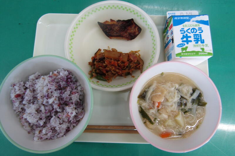 メバルの照焼は、味がよくおいしかったです。校内放送のほかほかニュースでメバルの由来は、目をみはっているような感じをうけることからきていると話していました。目が大きく開いている魚のようです。今後、図鑑で調べてみるとおもしろいですね。切り干し大根の炒め煮もごまがたくさん入って香ばしくて子どもたちももりもり食べていました。今日もおいしくいただきました。ありがとうございました。ごちそうさまでした!