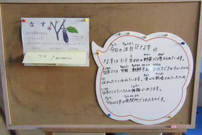 なすは、いんど生まれの野菜だと考えられています。日本には中国、朝鮮半島、東南アジアの3ルートから伝わったといわれています。昔から栽培されていたため、日本にはたくさんの種類があります。今日のなすは南関町でとれたものです。