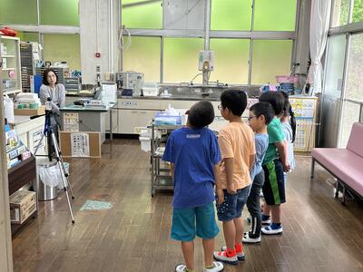 全部で4班に分かれ、2年生が1年生に学校のいろんな部屋を紹介してくれました。途中で、クイズを入れて、1年生に楽しく学校を知ってもらうことができました。