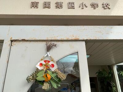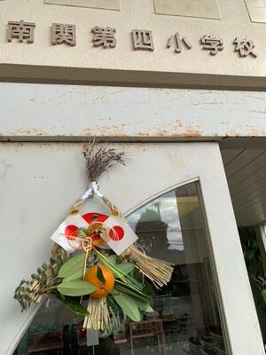 12月28日(火)、四小の玄関にも「しめ飾り」を飾りました。お正月にはその年の神様である「年神様」が、一人一人に1歳の年と幸運を与えるために各家を回るそうです。正月飾りは、年神様が家を見つけやすいように、また、気持ちよく家にいてもらうようお迎えするために飾り付けるそうです。
