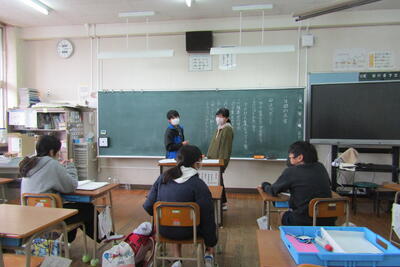 本日より、本校卒業生の先生が教育実習にいらっしゃいました。リモートで自己紹介をしていただきました。2週間、子どもたちと一緒に勉強をされます。