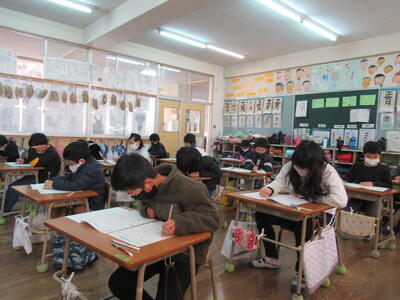 後日結果も返却されます。やって終わりではなく、間違えたところのやり直しや、苦手な分野の復習などを行い、次の学年への準備をさせたいと思っています。ご家庭でも、お声かけをよろしくお願いします。