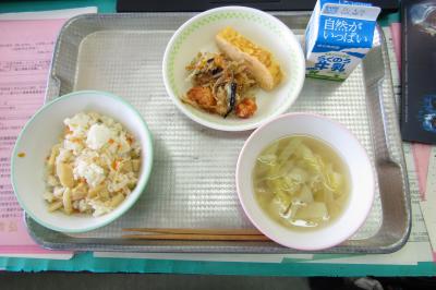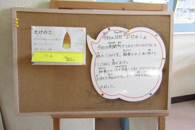 南関町でとれたばかりの「たけのこ」が入った「たけのこごはん」でした。おいしくいただきました。