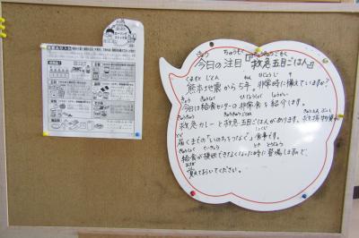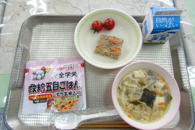 今日は、「もしも・・・」の災害で、給食が提供できないときの非常食「救給五目ごはん」がありました。
