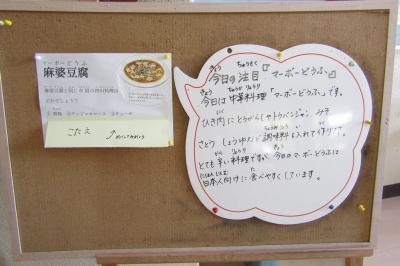 麻婆豆腐は、ひき肉にとうがらしやトウバンジャン、味噌、砂糖、醤油など調味料を入れてつくります。とても辛い料理ですが、今日のはやさしい味付けでした。