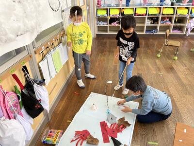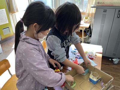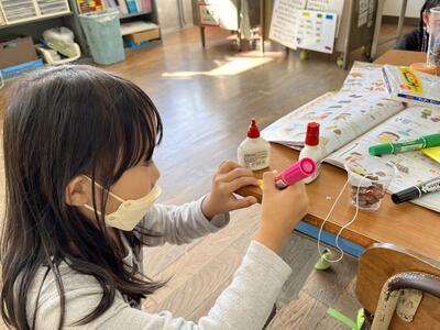 1年生は、生活科の時間におもちゃ作りをしています。