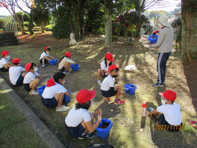 材料は秋を感じられる落ち葉やどんぐり、まつぼっくりなどです。