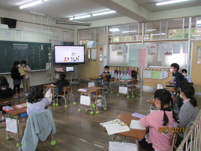 子どもたちは、ペープサートを使って上手に音読をしたり、