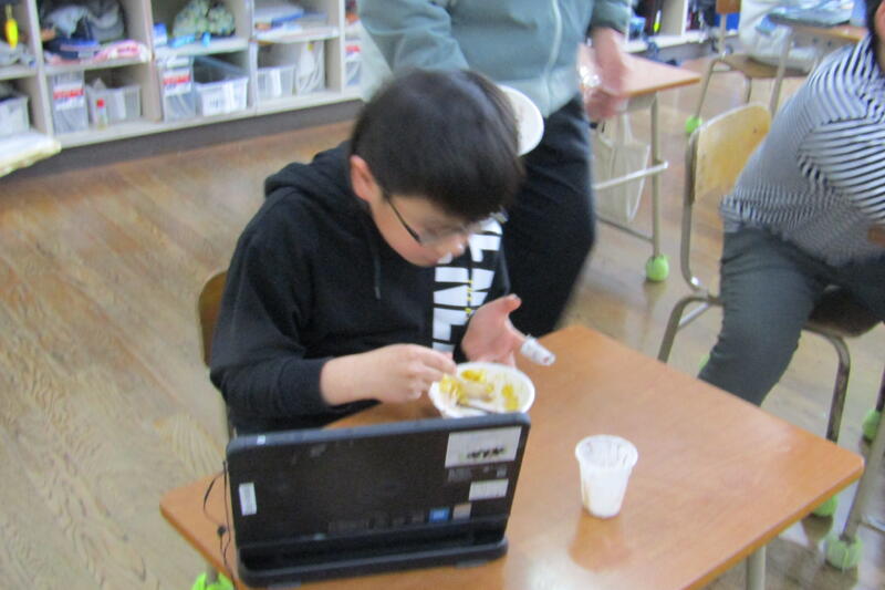 お楽しみ会(4年生) 投稿日時 : 03/18 承認者 今日、4年生はお楽しみ会をしました。転校する友だちがいるので、一緒に楽しい思い出をつくる時間になりました。クッキーやポッキー、アイスクリーム、フルーツをそれぞれ、自分のお皿に盛り付けて、マイパフェをつくって食べました。それそれ好みに合わせた、アレンジしたパフェが出来上がっていました。美味しいものを友だちと仲良く食べて、楽しい時間になりました。