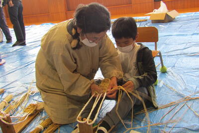 わらぞうりづくり(3年生 総合的な学習の時間) 投稿日時 : 2021/12/01 承認者 三年生はわらぞうりづくりに取り組みました。 地域の大先輩、保護者の方にもたくさんお越し頂き、丁寧な指導のもと、全員が完成させることができました。 とても貴重な体験をすることができ、子どもたちも大満足でした。
