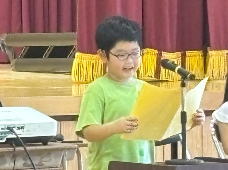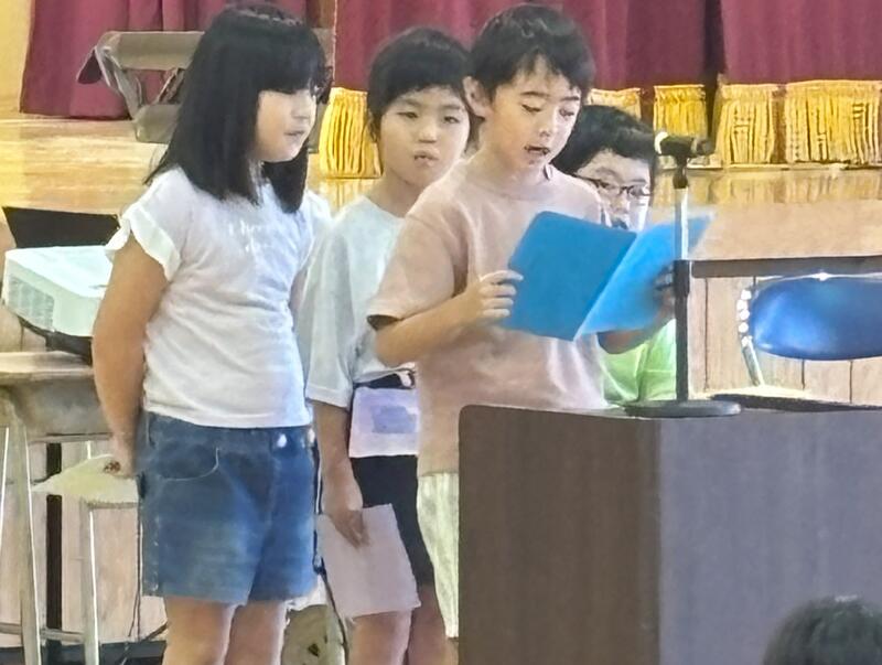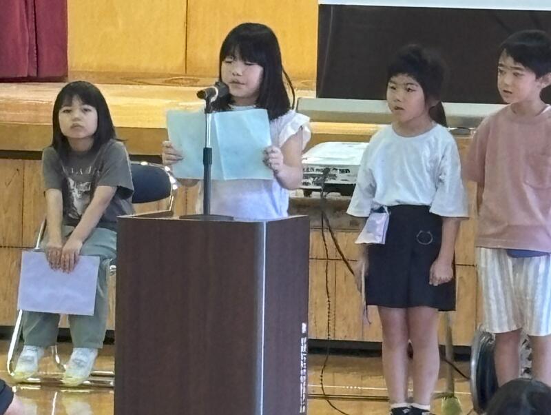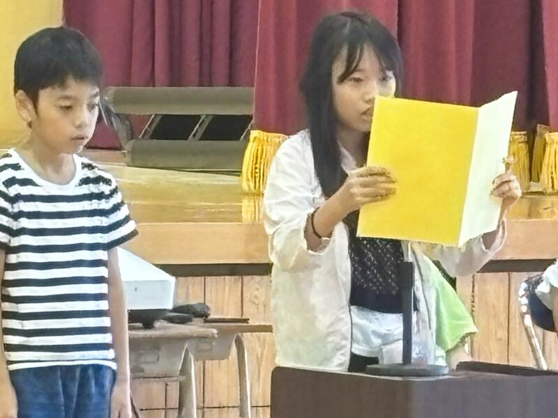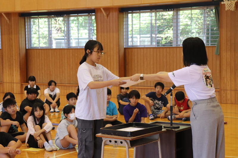 101日あった前期の修了式を10月10日〈金)にしました。初めに、各学年の代表者の「前期を振り返って」の作文発表。次に表彰、今まで賞状をもらった子どもたちをみんなに紹介して賞状を渡しました。最後の校長からの話では、前期の様子を写真で振り返りました。そして、前期の活動の中で三つの力(表現する力、つながる力、やりとげる力)をつけてきたことを話しました。子どもたちはしっかり聞いていました。前期の頑張りを自覚して達成感を感じて、後期も頑張ろうという意欲につなげてほしいと考えています。皆さんの頑張りを見て、先生達も楽しい充実した日々が送れました。保護者の方、地域の方々の日々のご支援に感謝しております。