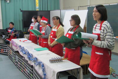 クリスマスに合わせてサンタの衣装でそろえた皆さんが、楽しいお話を届けてくださって、ギターと歌もお話を盛り上げました。準備や練習が大変だったと思いますが、おかげで子どもたちは笑顔いっぱいでした。楽しい時間をありがとうございました。