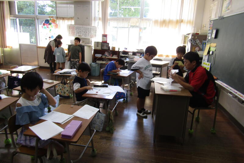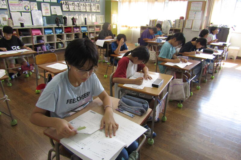 四小では、月に3回ずつ、すずかけタイムという学習の時間をとっています。学校中が、シーンとして、全児童が問題に取り組む時間になります。学年によっては、後半はみんなで苦手な問題について学習したり、答え合わせをしながら基礎基本の確認をしたり、友だちと教え合って理解をすすめたりすることもあります。しかし、基本は自分の力で問題を解き、どれだけ理解できているか振り返る時間になります。10月1日(水)は、県学力・学習状況調査の過去問に挑戦しました。4月からの学びがどれだけ自分の力になっているのか(子ども)、子どもたちが今までの学習内容をどれだけ身につけているか、また身につけていない部分はどこか(教師)を見つけて、今後の学習に活かしています。私たち教師も学力保障にもしっかり力を入れていかなくてはと振り返り、学力をつける授業について考えるきっかけにもなる時間です。子どもたち、先生方、みんなで学力向上にむけて取り組む時間がすずかけタイムです。