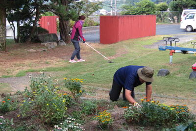子ども会のソフトボール、ビーチボール県大会と重なり、当日の参加者は少なくなりましたが、昨日までに事前作業に来ていただいたおかげで、スムーズに作業ができました。