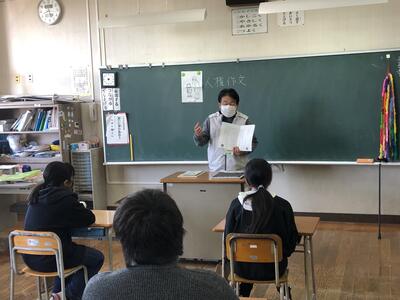 笑いが起こる楽しい話あり、人権について考える作文あり、どの学級も子どもたちがよく集中して話に聞き入っていました。