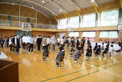 今年度は16名の新入生を迎えました。天気もよく、春らしい温かく穏やかな日差しのもとで、保護者や佐藤町長はじめご来賓の方々、そして5・6年生の子どもたちも一緒に1年生の入学をお祝いしました。