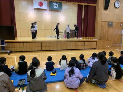 まず、学校の行事や一日の流れの紹介をしたあと、四小にまつわるクイズ大会や、じゃんけん大会をしました。