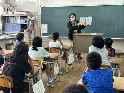 朝の読み聞かせ 投稿日時 : 2023/10/04 承認者 10月4日(水)朝から、クローバーの会の皆さんによる読み聞かせがありました。今日は、日髙さん、伊藤さん、立山さん、松永さん、打越さん、前田さんがいらっしゃいました。 手遊びや創作童話もあり、いろいろな絵本の読み聞かせがありました。控え室に戻ってからの会員の皆さんの会話も弾んでいました。いつもありがとうございます。