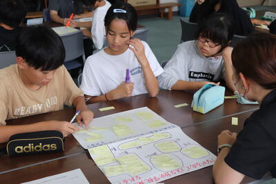 各グループで、付箋を使って全員で意見を出し合い、おとなの方の優しい声かけや助言を受けながら、子どもたちは真剣かつ和やかに意見を整理していきました。