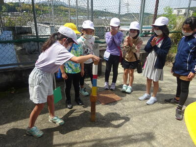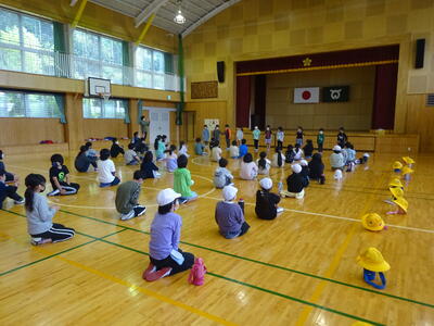 1年生歓迎会 投稿日時 : 2022/04/22 承認者 本日、1年生の歓迎会を行いました。 1年生の自己紹介のあと、各学年から1年生へのメッセージを伝えました。 そして、登校班に分かれて外でウォークラリーをしました。 6つの地点でそれぞれお題にチャレンジしました。 班長を中心に、1年生が楽しめるよう工夫をしてくれました。 これから色んな行事や遊びを通して、みんなで1年生を支えていきたいですね。