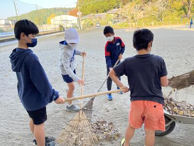 今日も朝から落ち葉掃き! 投稿日時 : 2022/11/10 承認者 今週から始まったボランティア活動の落ち葉掃きですが、 今日も朝からたくさんの子どもたちが校庭に集まってくれました。 中には、下学年の友だちに優しく声をかける上学年の姿も見られました。 また、自分たちで時間を決めて、それまでは集中して取り組み、 終わったら、片付けをして運動場で仲良く遊んでいました。 みんなで取り組むことで、気持ちのいい毎朝を迎えることができました。