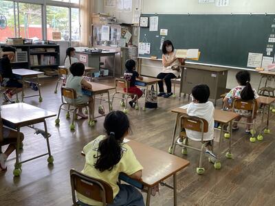 朝の読み聞かせ 投稿日時 : 2022/06/01 承認者 6月の始まりは、朝の読み聞かせでした。 「読み聞かせの会 クローバー」の皆さんです。 今日は1年生から、関さん、大里さん、伊藤さん、松永さん、前田さん、打越さんに入っていただきました。 昔なじみの童話や落語、創作絵本や物語、ゲームと、バラエティー豊かなラインナップでした。 いつも朝の貴重な時間においでいただき、ありがとうございます。