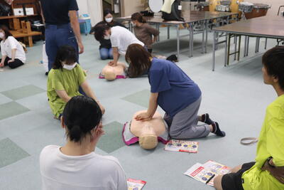 体験用の人形も複数準備していただき、みんなで体験できました。ない方がいいのですが、いざというときにこの体験を生かせるようにできたらと思います。講習を受けられた保護者から、夏休み中のプール開放時の監視もしていただきます。事故のないことを祈っています。