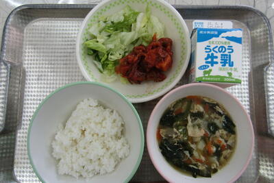 今日の注目は「小松菜」です。 投稿日時 : 2022/02/21 承認者 今日のメニューは、ごはん、牛乳、小松菜とたまごのスープ、鶏肉のチリソースあえ、レタスでした。 今日の注目の「小松菜」は、東京にある小松川という地名がもとになって、名付けられました。小松菜のほかにも、冬菜、雪菜、うぐいす菜とも呼ばれます。小松菜には、体の調子を整えるビタミンのほかにも、カルシウムや鉄など体をつくる働きもあります。