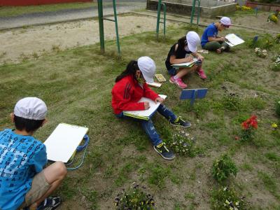 お花スケッチ(2年) 投稿日時 : 2021/04/28 承認者 図工の時間に、お花のスケッチを行いました。 クレヨンを用いて、上手に学級園に咲いている花の絵を描いていました。 ぼかしなどの技法も使って仕上げていました。 とても集中していました。子どもの絵はとっても素敵で、おもしろいです!