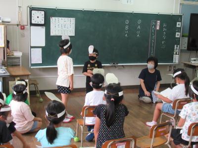 大きなかぶ(1年国語) 投稿日時 : 2021/06/28 承認者 国語の時間に、「大きなかぶ」の音読劇を行いました。 これまで、 本番に向けて、たくさん練習してきました。 少し緊張していたようでしたが、練習した成果をしっかりと発揮できていました。 お家でしっかり音読練習をがんばった様子が伝わってきました。元気よく、役になりきって発表してくれました。