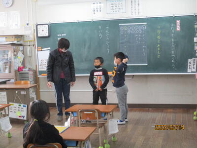 これは、なんでしょう(1年国語) 投稿日時 : 2023/02/15 承認者 1年生は、国語の時間に「これは、なんでしょう」という単元を学習しました。 2人組で問題を作り、ヒントの内容や、ヒントの出し方を工夫しました。 また、できた問題をみんなに出して、クイズ大会をしました。