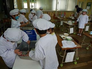 配膳をする子、おぼんの準備をする子…みんながそれぞれの仕事を分担し、協力して取り組んでいます。