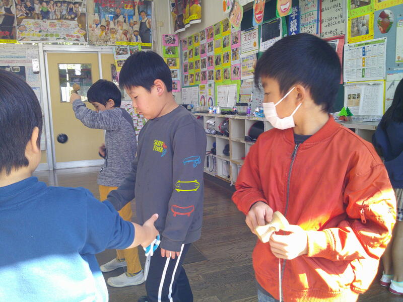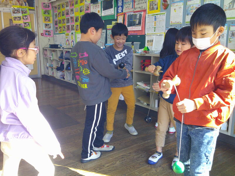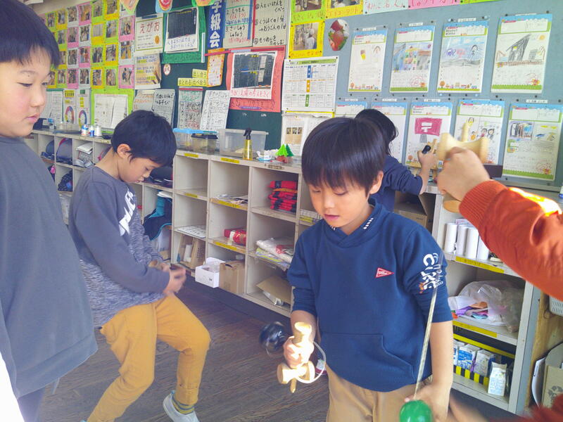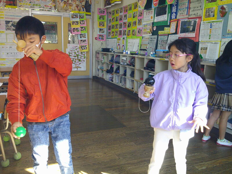けん玉、楽しいよ(2年生) 投稿日時 : 12/04 承認者 2年生の教室には、けん玉があります。今、子どもたちは、けん玉遊びの楽しさに気づき、休み時間などよくしています。ねらった場所に上手に玉がのると嬉しくなるけん玉。昔の遊びの楽しさに気づき始めた2年生です。