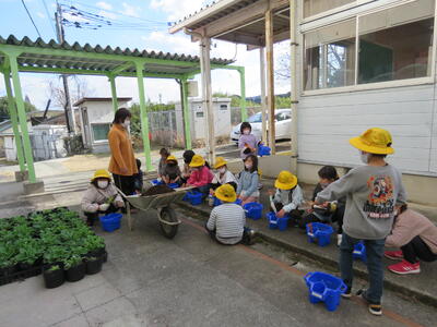 チューリップの球根を植えました。(1年生) 投稿日時 : 2021/12/20 承認者 今日は、寒い一日ではありましたが、日中は日が差してちょっとあたたかくなりました。そこで、1年生は、チューリップの球根を植えました。夏にはアサガオを育てたあの鉢に、今度は、チューリップの球根を一人二つずつ植えました。春には、きれいな花が咲きそうです。
