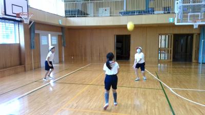 4年生の体育は、今、感染対策を行いながら、キャッチバレーボールに取り組んでいます。